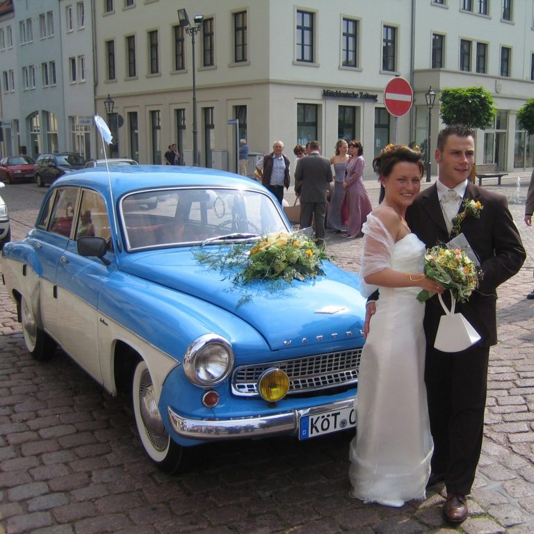 Unser Wartburg war z. B. beim Fotoshooting des Brautpaares Susann und Tobias vor dem Rathaus in Köthen ein echter Publikumsmagnet – und hat nicht nur das Brautpaar begeistert.
