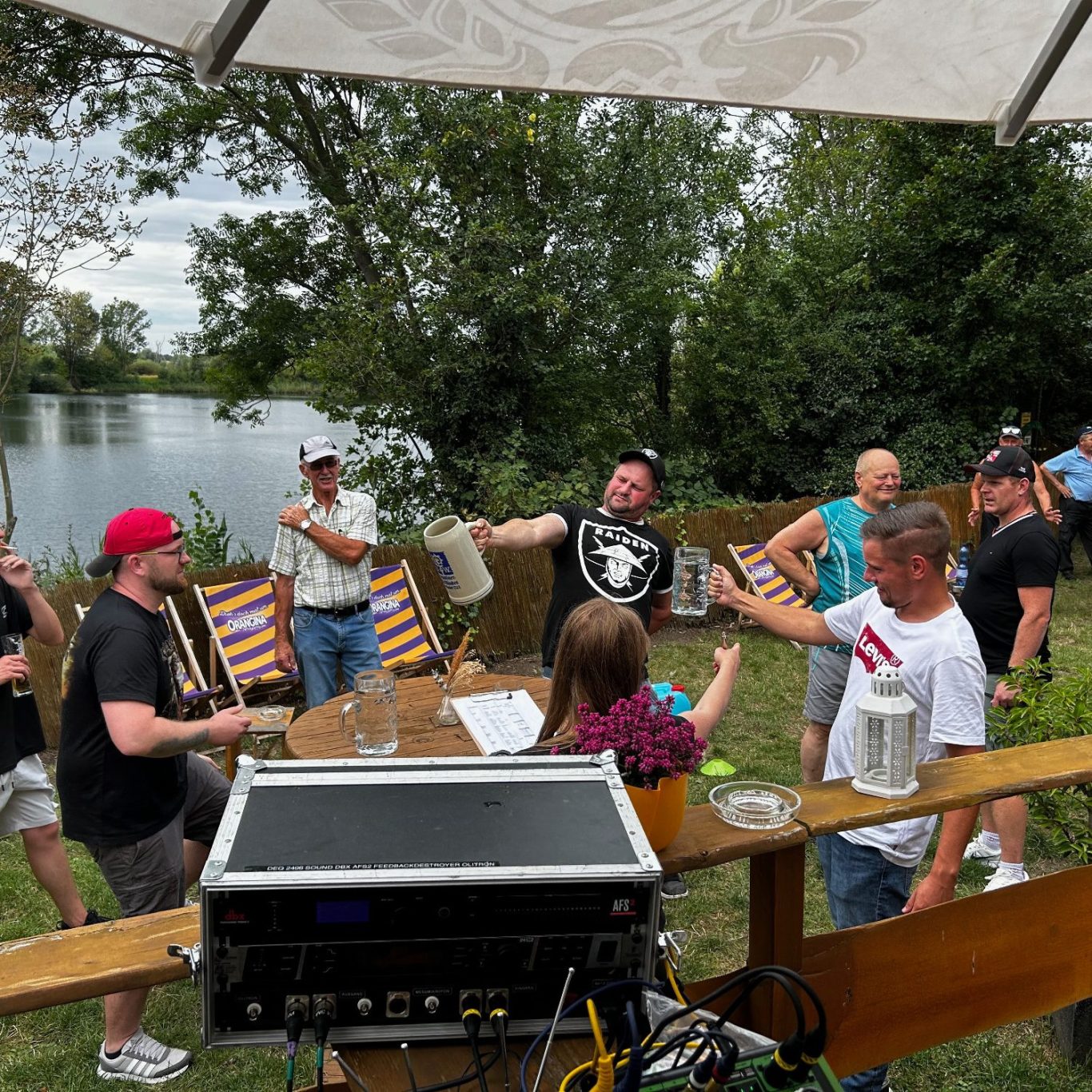 Danach haben wir abwechslungsreiche Stationen vorbereitet – vom Biermaßkrug-Halten am ausgestreckten Arm über Tauziehen bis zum Dosenspritzen mit einer Feuerwehrspritze. Geschick war gefragt beim Muttern-Schrauben auf Zeit, sowie Ringe ins Ziel werfen, und für Musikliebhaber gab's ein Quiz: Lieder erraten – live & mitreißend moderiert.